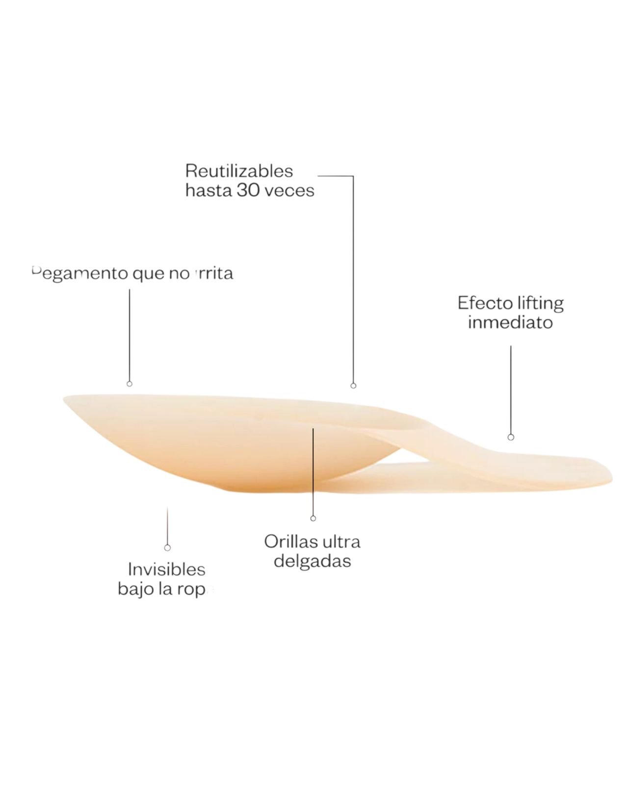 Nippz pull-up son autoadhesivas, lavables y reutilizables. Es la elección perfecta para un aspecto suave y cómodo sin tu sujetador, especialmente cuando usas vestido con espalda descubierta, traje de natación, strapless, etc. Nuestra versión pull-up brinda un aspecto mas firme a los pechos.