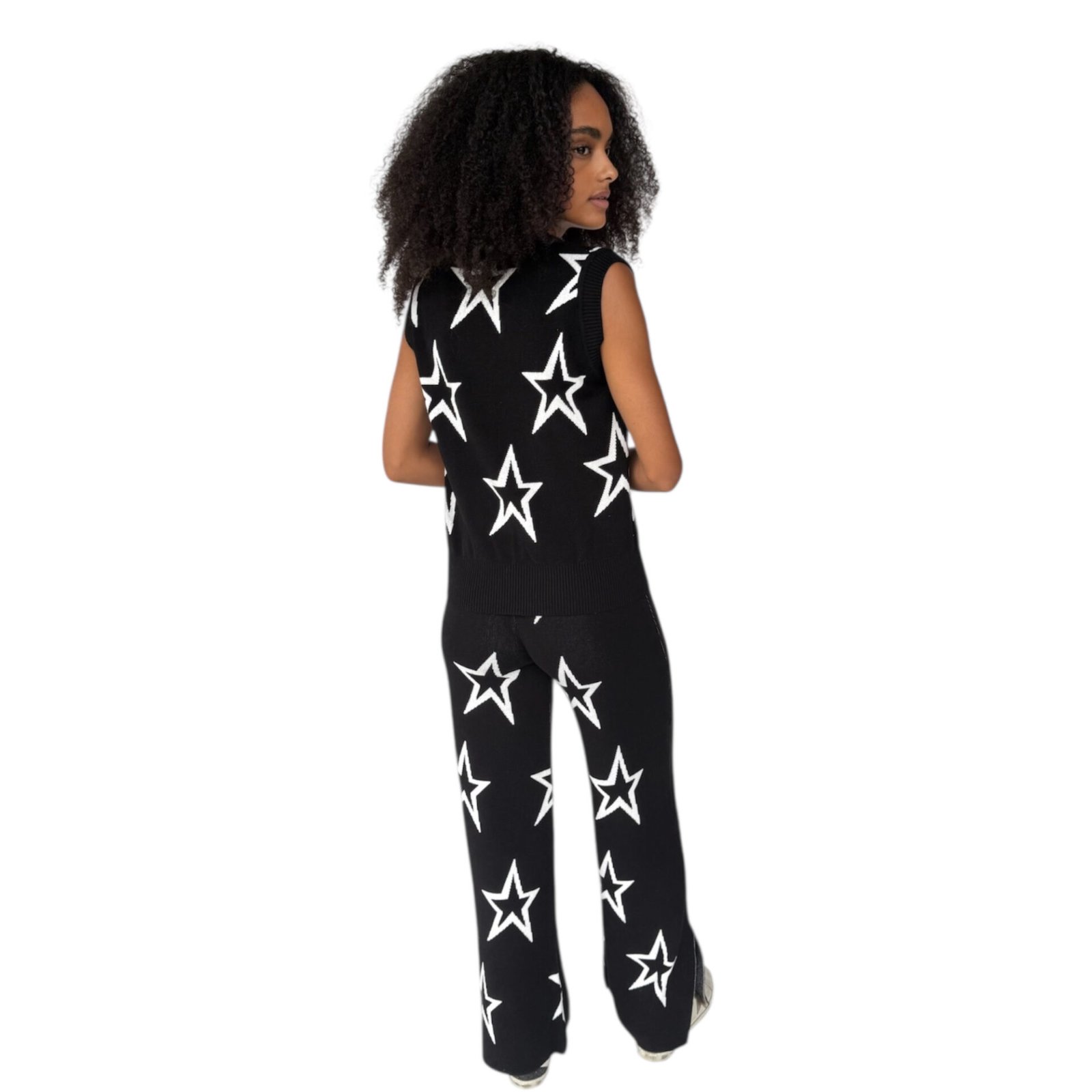 Set estampado de estrellas de blusa tipo chaleco con cuello v, sin manga y pantalón con abertura en laterales de tejido de punto delgado color negro/blanco.